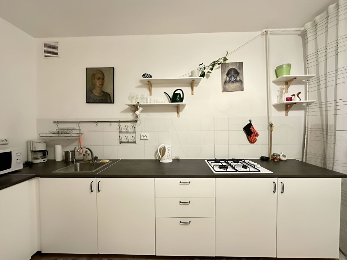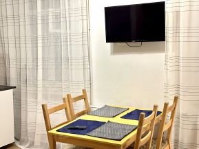 Укомплектована всем необходимым для комфортного проживания: стиральная машина, места для хранения одежды, посуда и кухонные принадлежности, холодильник, чайник, кофеварка, ТВ, wi-fi, одна 2-сп. Кровать и две 1-сп.