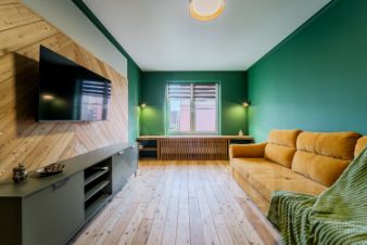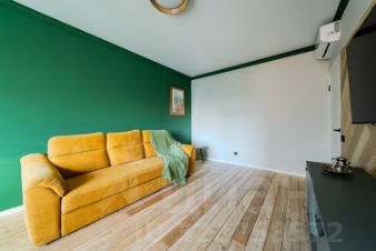 Дизайнерский ремонт выполнен в 2025 году, есть вся бытовая техника, в т.ч. водонагреватель и кондиционеры в гостиной и в спальне. Подключён интернет. В ванной теплый пол. Подоконники из натурального дерева (в гостиной подоконник-скамья). Вид на телебашню. Раскладной диван в гостиной, в спальне шторы блэкаут. Квартира угловая.