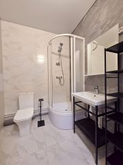 * Ванна: Душевая кабина, вместительный стеллаж, стиральная машина, полотенцесушитель.