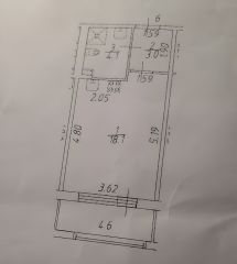 Комфортная планировка с дверью, которая отделяет прихожую с санузлом от жилой комнаты.