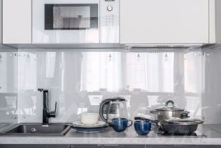 - Полностью оборудованная кухня - кофемашина, холодильник, варочная панель, электрический чайник, посудомоечная машина, микроволновая печь;