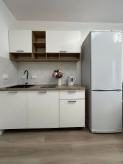 - В квартире есть вся необходимая бытовая техника (холодильник, стиральная машина, варочная панель, вытяжка, микроволновая печь , телевизор , чайник) и функциональная мебель (диван, шкаф, кухонный гарнитур, стол, стулья)