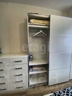В спальне - кровать, организованы также места хранения (шкаф и комоды), есть утюг, гладильная доска и сушилка.