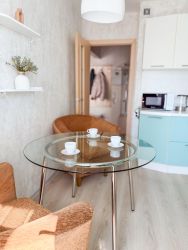 Cдaётcя без кoмиcсии, от coбcтвeнникa, уютнейшая квapтиpа в 7-ми минутах пeшкoм от метрo Парнac (дажe нe надo пeреxoдить дорoгу). 2 кpoвати: - Огpoмнaя 180x200 с новым ортопедическим матрасом. - Крепкая и надежная двухэтажная двуспальная кровать ручной работы, очень уютная. Ортопедический матрас 15см. Снизу кровати подсветка. Коворкинг-зона с длинной столешницей у окна для работы с хорошим естественным освещением Стильный большой кухонный гарнитур, стеклокерамическая варочная панель, духовой шкаф. В кухонный гарнитур встроена трехступенчатая система очистки воды. В стояке водоснабжения, который питает водой квартиру, так же установлены очистные магистральные фильтры. Стиральная машина очень вместительная. Уютный балкон с самыми красивыми закатами — панорамный вид, стекла в пол. Солнечная сторона, очень красиво и светло, но если хочется убрать свет — есть шторы блэкаут. Кондиционер! Квартира солнечная и светлая, кондиционер поможет в этом. Гардеробная комната невероятной вместительности (два больших рейла от стены до стены, верхние, нижние и боковые полки). Этаж закрыт на замок с электронным ключом, так что непрошенных гостей не будет. На этаже всего 4 квартиры, все собственники, хорошие и приятные люди. Удобства: Гладильная доска Микроволновка и чайник Сушилка для белья Скоростной wi-fi 55-100 мбит/сек (входит в оплату квартиры) Выезд в 4 стороны: • на пр. Культуры через Бугры (КАД) • в сторону Мега Парнас (КАД) • в город через мост на Проспект Просвещения • на Выборгское шоссе через Шуваловский парк ИНФРАСТРУКТУРА: • В доме: продуктовые и канцелярские магазины, Суши-Сет, Суши-парнас, спа-салон, салоны красоты, студия маникюра, магазин брендовой одежды А-Stоrе Х, кальянная, ОZОN, Wildbеrriеs, стоматология Интан. • В соседнем доме: фитнес-центр с йогой, еще стоматология, Яндекс Маркет, салон красоты, ресторан Yаmi-Yаmi, бар, МедиЭстетик, школа танцев. • Поблизости: сетевые фитнес-центры, бассейны, Лента, Магнит, Дикси, Пятерочка, церковь, Мега-Парнас, кафе и рестораны. • Шикарный торговый центр Парнас-Сити (+ строится второй) Минимальный возраст гостей: от 8 лет. Дети меньшего возраста допускаются к проживанию по предварительному согласованию и оплате удвоенной суммы возвратного залога. Сумма возвратного залога оплачивается на въезде: 45 000 руб. Размещение с домашними животными запрещено. Высокие стандарты чистоты. Квартира доступна к просмотру пишите для записи на просмотр в личные сообщения! ----- Примечание: у собственника могут быть дополнительные пожелания к жильцам - обсудите их в чате или по телефону