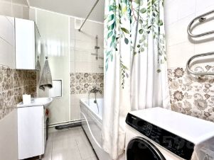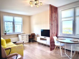 Если вы любите комфорт, удобство, любите прогулки на природе и в тоже время хотите жить неподалеку от центра Петербурга, наше предложение для вас. Сегодня предлагается в аренду отличная евро двушка в ЖК ЗимаЛето. Адрес: пр. Энергетиков, дом 9, корпус 1. Квартира расположена на 12-м этаже 22-х этажного монолитного дома 2019 года постройки, застройщик Сетл Сити. Дом находится 5-7 минутах ходьбы от ст. метро Ладожская и в 15-20 минутах езды от центра города - площади Александра Невского и площади Восстания, на берегу реки Большая Охта. Общая площадь квартиры 43 кв.м, высота потолков 2,7 м. Квартира представляет собой помещение, включающее: • кухню-гостиную площадью 19,9 кв.м • спальную комнату 14.7 кв.м. • ванную комнату 4,3 кв.м • санузел 1,4 кв.м • приходую 3,3 кв.м • застекленный балкон В квартире произведен качественный ремонт с использованием импортных материалов, есть все необходимое для комфортного проживания: • оборудованные спальными местами и местами хранения гостиная и спальная • кухня с современный мебелью и техникой • в прихожей вместительная гардеробная с шкафом-купе с зеркалами • в санузле есть все для комфортного пользования Балкон в квартире - отдельное место для отдыха и времяпровождения, оснащен подвесным креслом, дополнительным освещением, столиком и тумбой. Отсюда открывается панорамный вид на город. Дом и придомовая территория оснащены системой видеонаблюдения, парадные - бесшумными лифтами. Имеется паркинг и бесплатные стоянки на территории. Детский сад на 190 мест и школа на 450 учеников находятся прямо во дворе комплекса. Развитая инфраструктура района включает школы и детские сады, поликлиники, театр, торговые центры с кинотеатрами, парки. Более половины квартала отдано под озеленение: газоны, клумбы, деревья. Для прогулок и игр предусмотрены большая спортивная и детские площадки, пешеходные дорожки и зоны отдыха. Отдельно выделены места для гостевых парковок общей вместительностью 300 машин. На первых этажах - коммерческие помещения пекарни, магазины, аптеки, кафе и пр. торгово-социальные учреждения формата "у дома". В пешей доступности, у станции метро "Ладожская", находятся торговые комплексы "Заневский каскад" и "Нео", несколько гипермаркетов и фитнес-клубов. От дома можно будет пешком дойти до станций метро "Ладожская", ж/д станции "Ладожская". В 800 м находится Заневский проспект прямой выезд на проспект Косыгина, Колтушское шоссе и КАД. В районе отлично развита сеть общественного транспорта. Квартира сдается на длительный срок для 1-2 человек, возможно проживание с детьми от 7 лет. Арендаторов с животными не рассматриваем. Цена: 65000 + КУ (4500-6000 руб, в зависимости от сезона), имеется депозит 100% арендной платы. Комиссия риэлтора - 50% Звоните, покажем в удобное для вас время. Елена