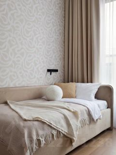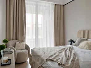 Просторная кухня гостиная, две уютные комнаты, совмещенный санузел, лоундри, две гардеробные комнаты и лоджия. Во всех комнатах и лоджии установлен теплый пол. Интерьер оформлен в нейтральных тонах,комнаты светлые.