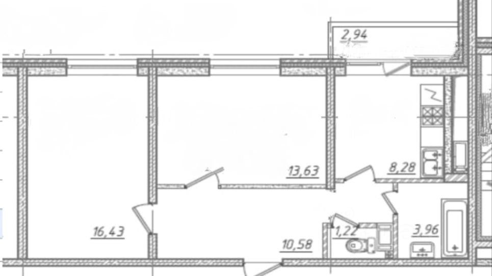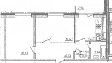 Эргономичная планировка: окна в благоустроенный двор, общая площадь 54,1 кв. м., комнаты правильной формы 16.4 и 13.6 кв. м, просторный коридор 10,5, кухня 8.3 кв. м, лоджия 3 м ( не включена в общую площадь квартиры).