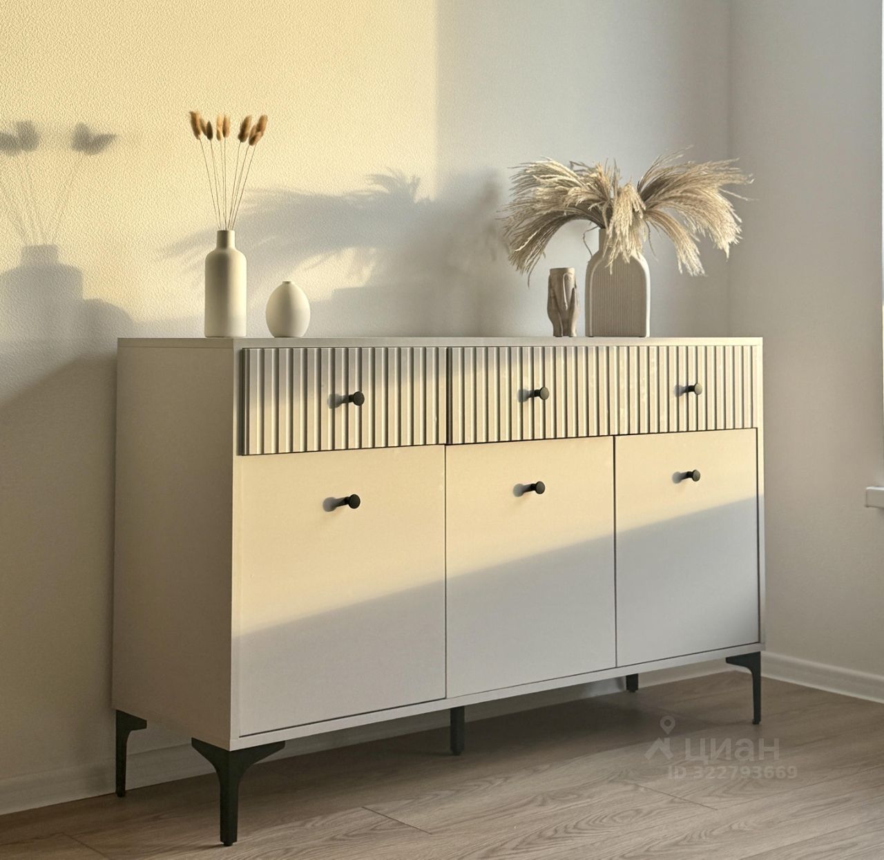 В коридоре установлен вместительный 4Х-створчатый шкаф, зеркало, в гостиной - большой кОМОД.