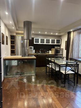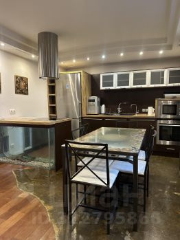 На кухне установлен кухонный гарнитур с аквариумом и вся необходимая бытовая техника: посудомоечная машина, холодильник, вытяжка, варочная панель, стиральная машина, микроволновая печь, кофеварка. Также на кухне оборудован теплый пол.