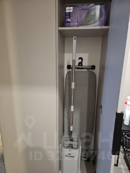Есть технический шкаф с вертикальным пылесосом, гладильной доской, утюгом.