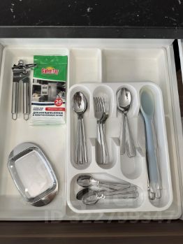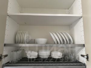 Кухня оснащена бытовой техникой: посудомоечная машина,холодильник, варочная панель, духовка, микроволновка, чайник. Есть необходимый набор посуды, столовые приборы, кастрюля, сковорода.