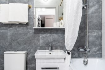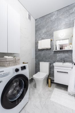 Санузел с полноценной ванной, стиральная машина Samsung для бережной стирки ваших вещей, теплый пол.