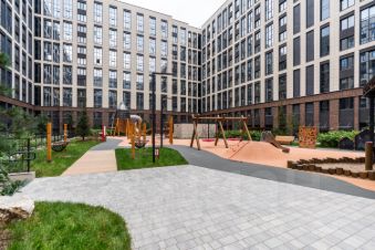 Дом новый. Закрытый зеленый двор без машин с детской площадкой и местами для отдыха.