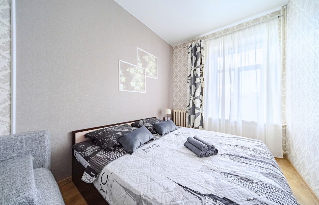 -Современный классический ремонт. Квартира-Студия разделена на спальню и кухню, оснащена 2-х спальной кроватью, предусмотрено 2 дополнительных спальных места на раскладном диване. Есть телевизор, Wi-Fi, места для хранения (шкаф, 2 комода, тумбочки).