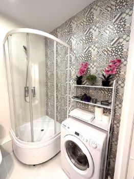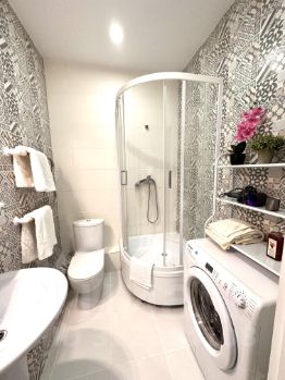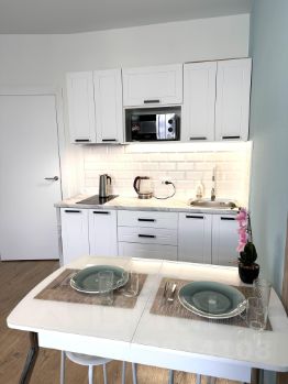 В квартире есть все необходимое для комфортного проживания: Удобная кровать(160*200) с подъёмным механизмом для оптимального использования пространства, вместительный шкаф, смарт тв, большой холодильник, плита , микроволновая печь, стиральная машина, чайник, фильтр для воды.