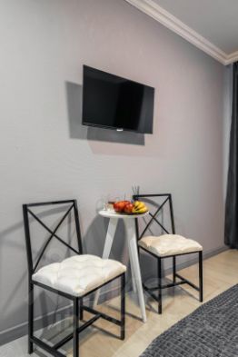 Имеется телевизор,шкаф, вешалка,журнальный столик, стулья.