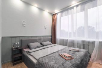 Имеет спальню с приятным интерьером.