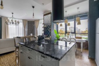 просторная кухня-гостиная с панорамными окнами, что обеспечивает обилие света и воздуха, с выделенными гостевой, рабочей и столовой зонами. Автоматические шторы с электроприводом, премиальная техника на кухне.