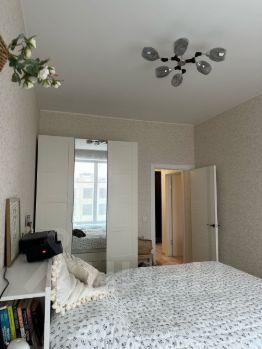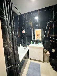 На кухне плита индукционная и духовой шкаф Samsung (оригинал), ванная мебель и вся сантехника немецкой фирмы AМ PM. Стены ванной- керамогранит фирмы Италон. Пол- бельгийский кварцвинил на подложке, бесшумный. Натяжные (не навесные) потолки. Большие окна.