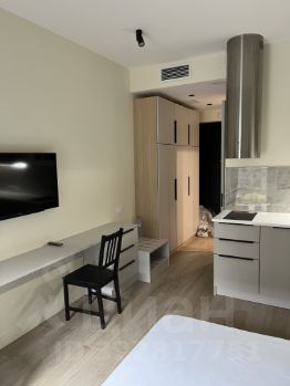 Квартира оснащена всей необходимой техникой: кондиционер, холодильник, телевизор ,стиральная машина, сушилка для белья, гладильная доска, утюг, чайник, теплый пол. В ванной комнате установлена душевая кабина. В студии сделан качественный дизайнерский ремонт, который создаёт атмосферу комфорта и уюта. Вся мебель и техника новые, в квартире никто не жил.