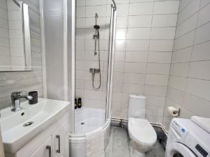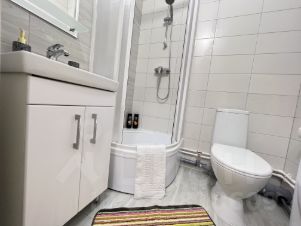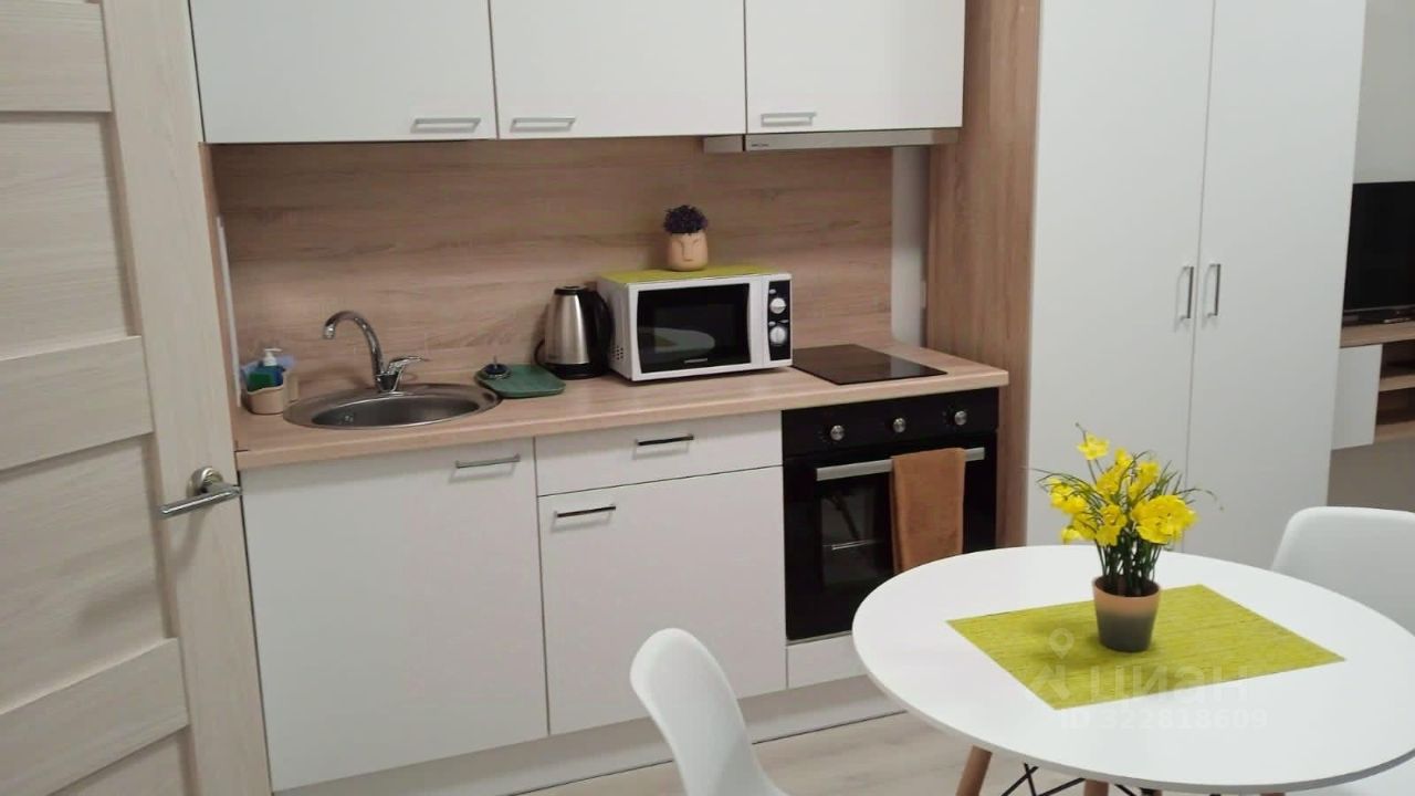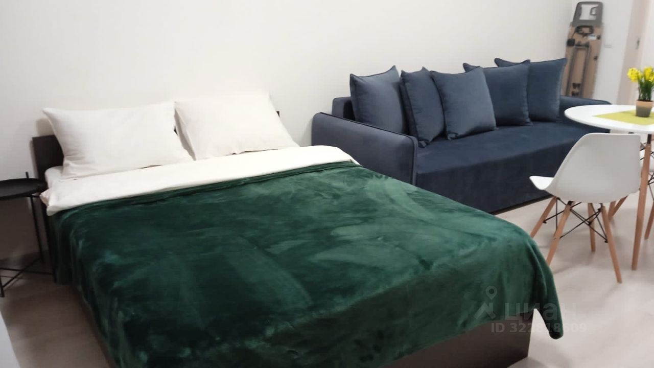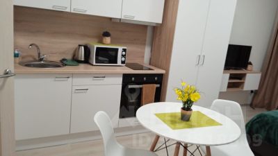 В квартире сделан дизайнерский ремонт, который приятно удивит даже самых взыскательных арендаторов. Пространство студии продумано до мелочей: комната обставлена современной мебелью, кухня оснащена всей необходимой техникой — холодильником, стиральной машиной и телевизором. В ванной комнате установлена душевая кабина. Из окон открывается вид на улицу, а лоджия станет отличным местом для утреннего кофе или вечернего отдыха.