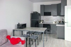 В апартаментах могут разместиться до 6 гостей. Для отдыха предусмотрены две отдельные спальни с двуспальными кроватями и рабочим местом у окна с видом на набережную. Просторная кухня-гостиная объединяет обеденную зону, диван-кровать и телевизор. Кухонное пространство полностью оборудовано: варочная панель, духовой шкаф, холодильник, микроволновая печь, чайник, посудомоечная машина и все необходимые принадлежности для приготовления еды.