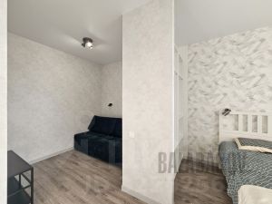 Просторная и светлая квартира с продуманной планировкой — по функционалу близка к двухкомнатной. Отдельная спальня и мини гостиная/ТВ зона.