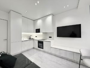 В квартире выполнен дизайнерский ремонт. Очень светлая квартира. Огромный эркер с панорамными окнами и видом на Малую Невку, просторная кухня-гостиная, уютная спальня, вместительная гардеробная. Имеется вся необходимая мебель и техника: