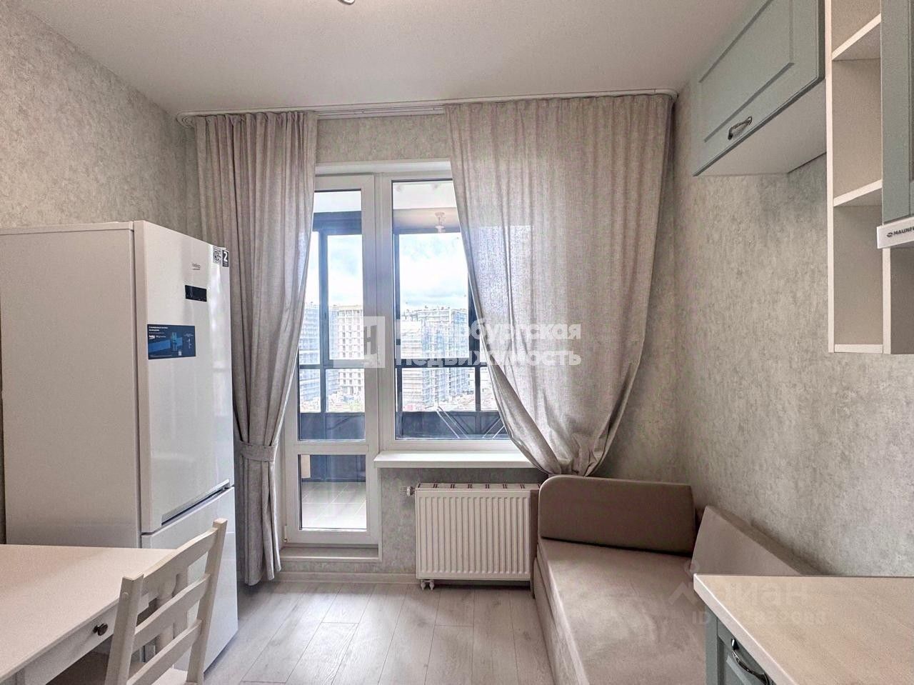 Квартира расположена на 8 этаже 19-этажного дома. Оснащена всем необходимым для комфортного проживания. Просторная светлая комната, площадью 16 кв м с вместительным встроенным шкафом идеальное место хранения одежды, диван, тумба с телевизором, зеркало. Для удобства используются шторы блэкаут - защита от уличного света, лучшая звукоизоляция, теплосберегающие свойства. Уютная кухня имеет выход на большую застекленную лоджию. В квартире установлен кондиционер.