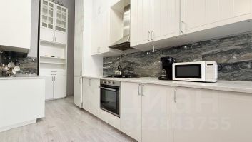 Кухня встроенная, укомплектованная качественной бытовой техникой, современная мебель.