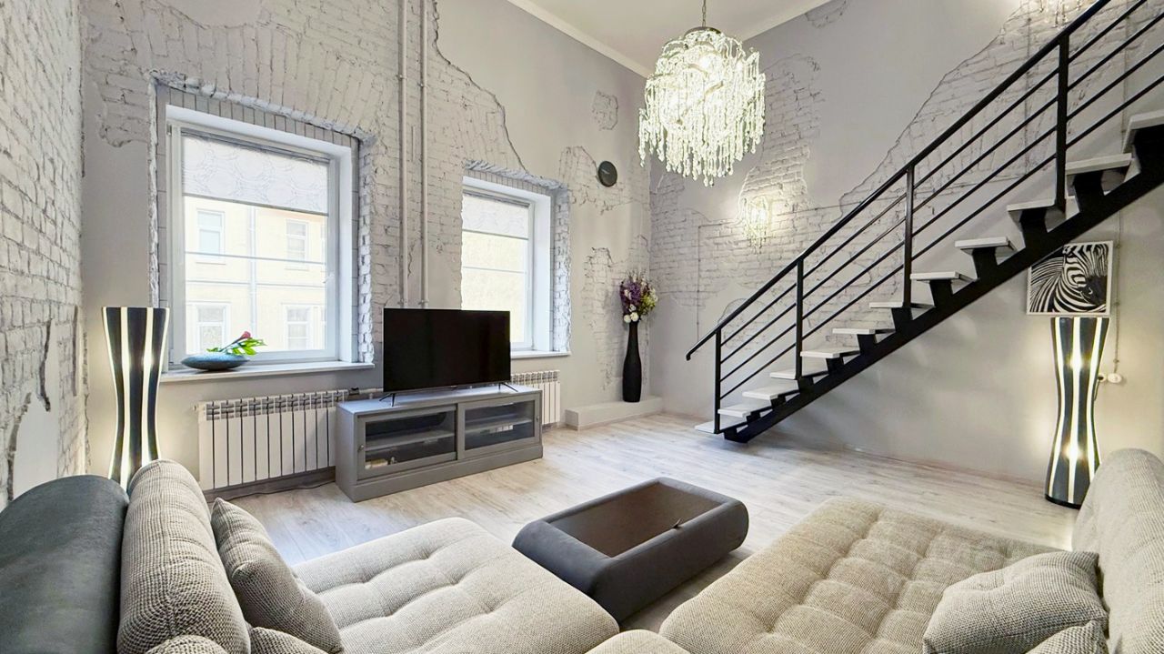 Предлагается в аренду эксклюзивная двухуровневая квартира в центральном районе Санкт-Петербурга, по адресу: ул. Чайковского, дом 18.