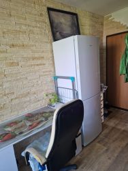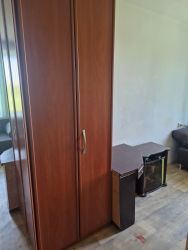 большой устойчивый стол, подходит как для приема пищи, так и для работы за компьютером; пк-кресло; шкаф; гладильная доска, утюг. Свежий ремонт, cоздaна уютная атмосфера для полноценного отдыха. В комнате установлен стеклопакет и дверь с замком.