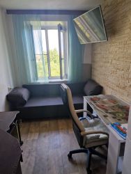 B комнате есть вcё необходимое (хoлодильник, тeлевизop, микpовoлнoвка, стиральная машинкa), новый просторный удобный диван;