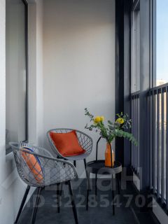 В ванной комнате подогреваемый пол, стиральная машина, стеллаж для косметических средств, фен. Огромная лоджия 4,7 м с местами для отдыха.