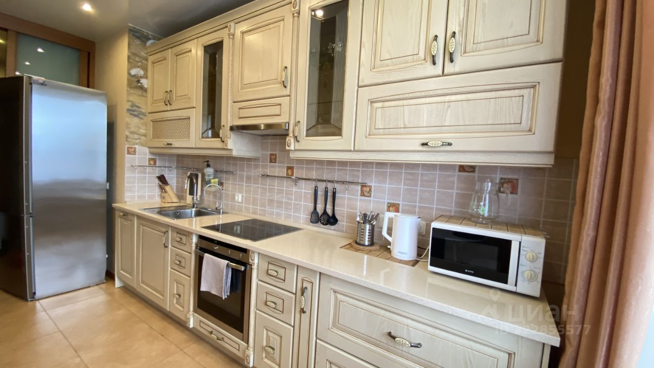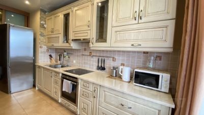 В квартире сделан качественный ремонт. Кухня выполнена из дорогих материалов с каменной столешницей, оснащена премиальной техникой. Есть посудомоечная машина, соковыжималка, блендер, вся посуда.
