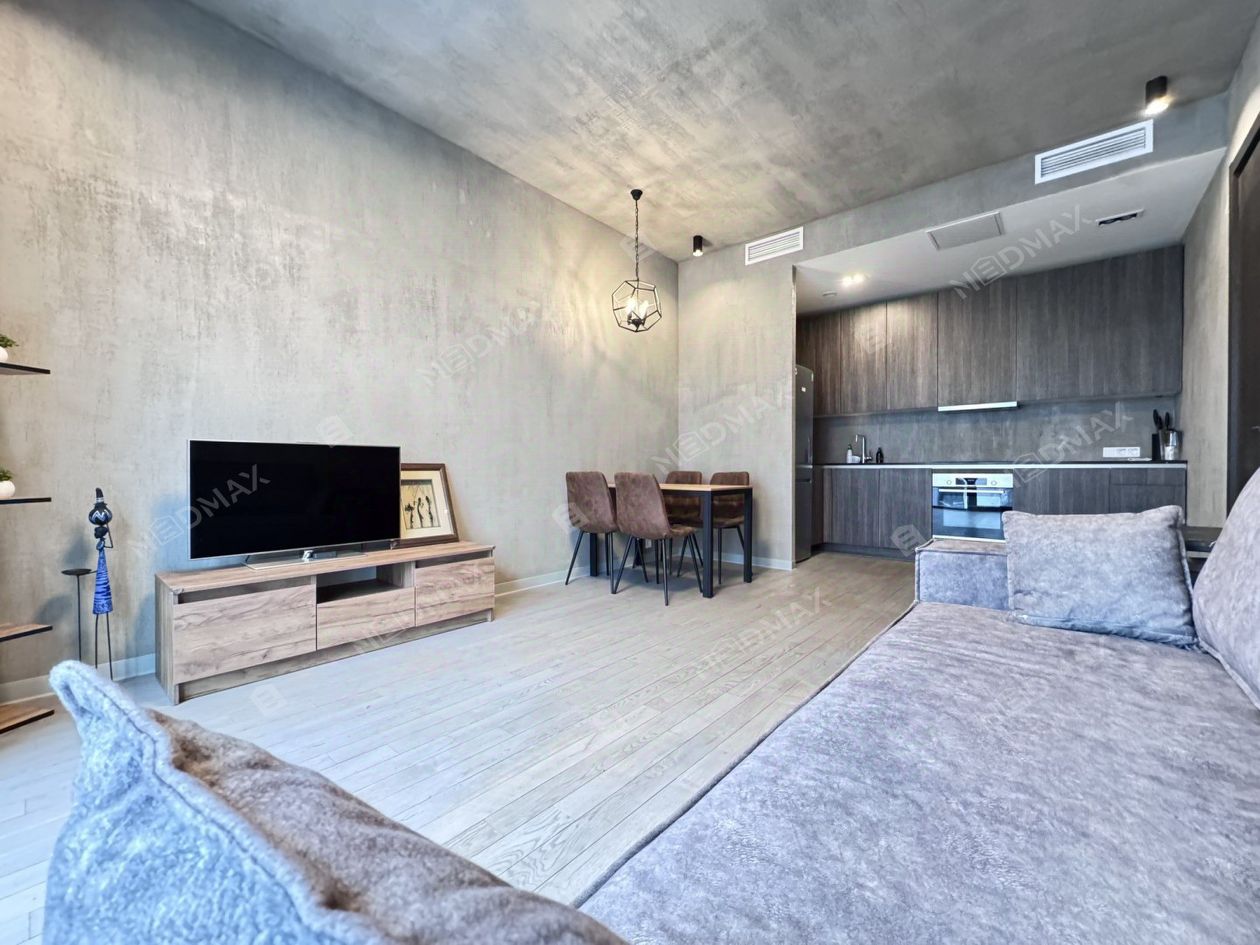 Планировка - просторная гостиная с оборудованной кухней (посуд.машина, духовка и тд.), мастер - спальня (кровать 180*200) с ванной комнатой, гостевая спальня/кабинет, гостевой санузел с душевой. Высокие потолки 3 м, теплые полы, кондиционеры. Много мест для хранения. Квартира очень уютна и спокойная.