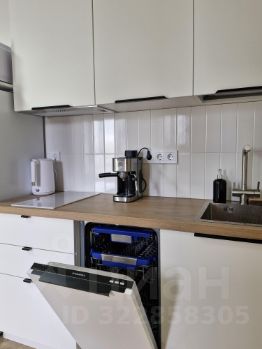Полностью оборудованная кухня: холодильник, индукционная плита, вытяжка, микроволновка, посудомойка, рожковая кофемашина, электрический чайник, фильр питьевой воды встроенный, набор посуды.Также есть лоджия.