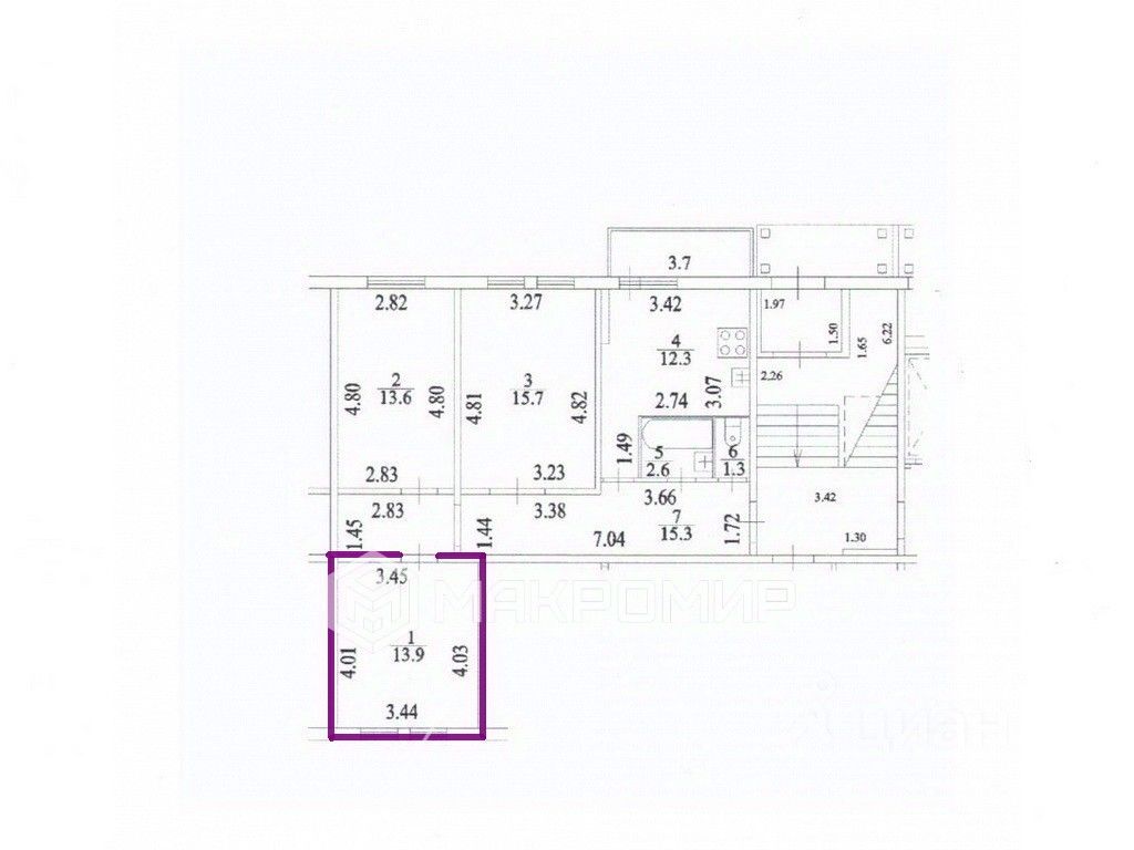 13,9 м²