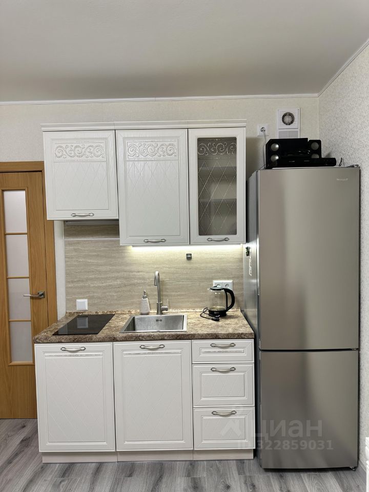-В квартире сделан качественный евроремонт. - Квартира укомплектована мебелью и бытовой техникой, есть все необходимое для комфортного проживания, встроенная кухня, плита, обеденный стол, шкаф купе, комод, диван. Из техники к вашим услугам холодильник, телевизор и стиральная машина, выход на застекленную лоджию.