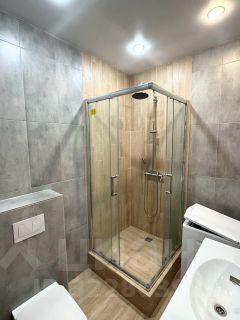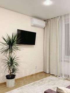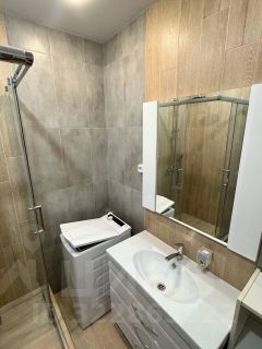 В квартире сделан качественный евроремонт. Пространство удобно зонировано, что позволяет рационально использовать каждый метр. В комнате и на кухне есть вся необходимая мебель. Из техники — кондиционер, плита, микроволновая печь, холодильник, посудомоечная машина, телевизор и стиральная машина. Санузел совмещенный, оборудован современной душевой кабиной.
