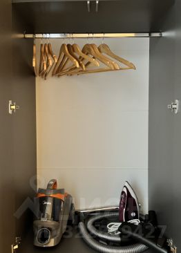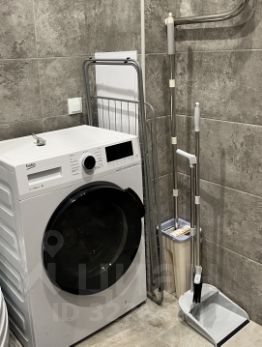 В квартире есть стиральная машина, холодильник, микроволновая печь, чайник, телевизор, пылесос, утюг, сушильная доска, гладильная доска. Все бытовые предметы: посуда, сковородка, кастрюля, столовые приборы.