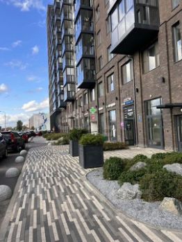 В пяти минутах — ТЦ "Охта Молл" с ресторанами, кинотеатром и всеми удобствами.