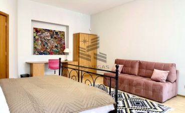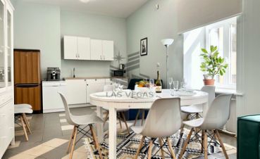 Квартира расположена на 4-м этаже 5-этажного дома (лифт). Четыре изолированных спальни и большая гостиная. Подойдет для размещения до 16-18 человек. Два санузла (один с ванной, второй с душем), два балкона. Окна выходят во двор.