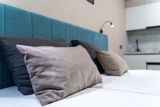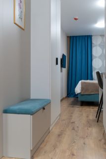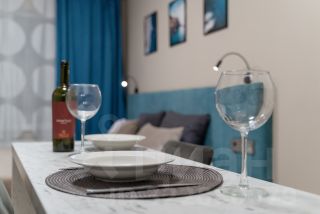 Общая площадь 21 м2, ванная комната с гавайским душем. В студии установлена встроенная кухня со всей необходимой техникой, есть стиральная машина, шкафы для хранения вещей, двуспальная кровать (из 2-х составных односпальных, при необходимости можно разделить). Оснащена постельным бельем, есть кухонные принадлежности, интернет и телевидение.