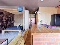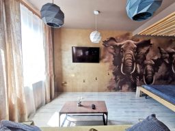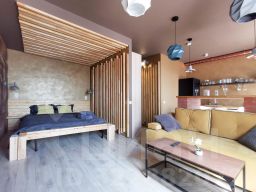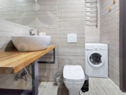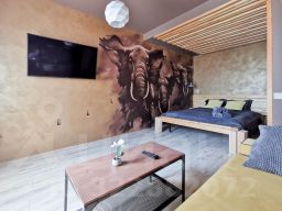 Комфорт и удобство: Апартаменты оборудованы всем необходимым для комфортного проживания — раскладной двуспальный диван, двухместная кровать, Smart-телевизор, высокоскоростной Wi-Fi, стиральная машина, утюг, фен, гладильная доска и сушилка для белья.