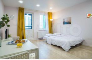 Квартира обставлена мебелью и оснащена всей необходимой техникой: холодильником, телевизором и стиральной машиной. В студии продумана каждая деталь, чтобы вы чувствовали себя как дома. Есть совмещённый санузел с ванной и небольшой балкон, где можно наслаждаться свежим воздухом.