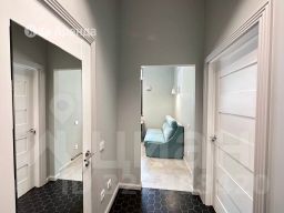 Техника и мебель в квартире новые. Качественные и лаконичные диваны от "MZ5 Group" раскладываются. В прихожей: зеркало в полный рост, пуф, настенная вешалка, полки.