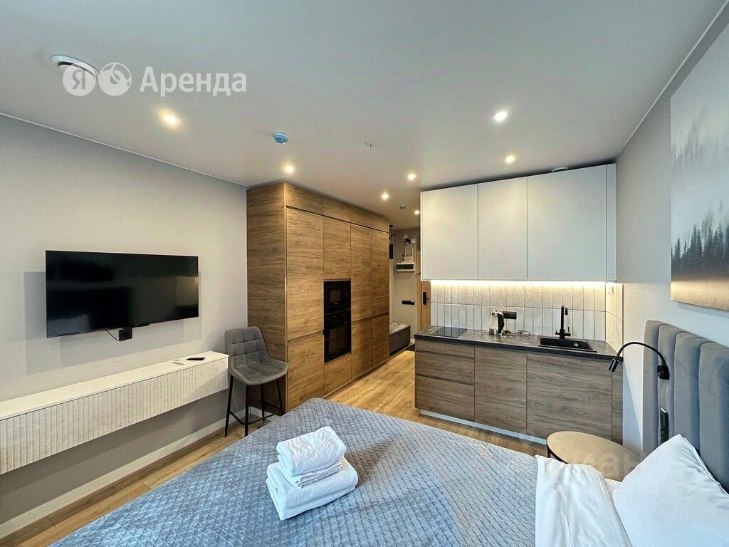 Сдаётся студия площадью 22 кв.м. с евроремонтом на 7 этаже в 15-этажном доме на срок от 11 месяцев. Из техники есть: