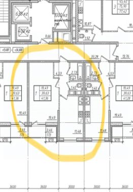 Планировка: Просторная комната 15 м², кухня 12 м².