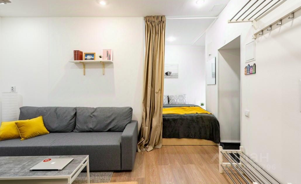 Планировка: 1 спальня, полностью оборудованная кухня (холодильник, плита, стиральная машина) и уютная гостиная зона.